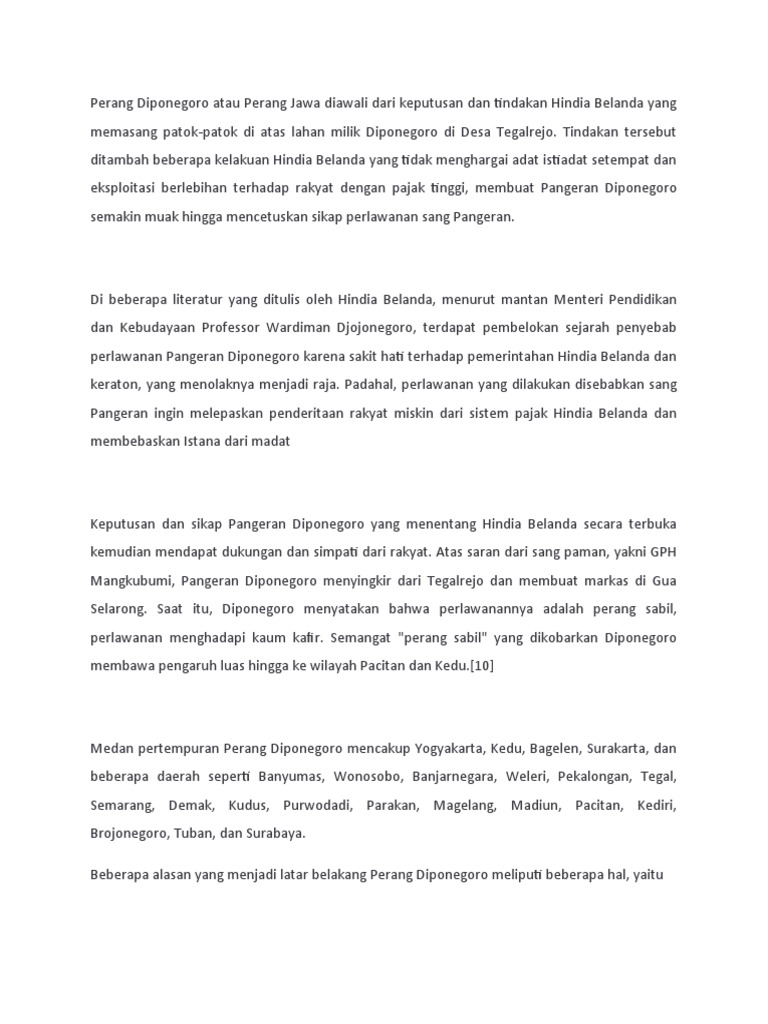 Akhir perlawanan pangeran diponegoro adalah ketika dia ditangkap pada tahun 1830 oleh belanda, yang awalnya menjanjikan perundingan namun kemudian mengingkari janji tersebut. Dari sembilan istri ini, ia memperoleh 12 putra dan 10 putri. Sejarah perjuangan dan biografi pangeran diponegoro. Sejarah perang diponegoro atau bisa disebut juga perang jawa merupakan perang besar yang pernah terjadi di nusantara antara penjajah belanda dan pasukan kronologi perang diponegoro. Menyingkir dari desa tegalrejo, diponegoro pun pergi membuat barisan perlawanan terhadap belanda yang bermarkas di gua selarong.